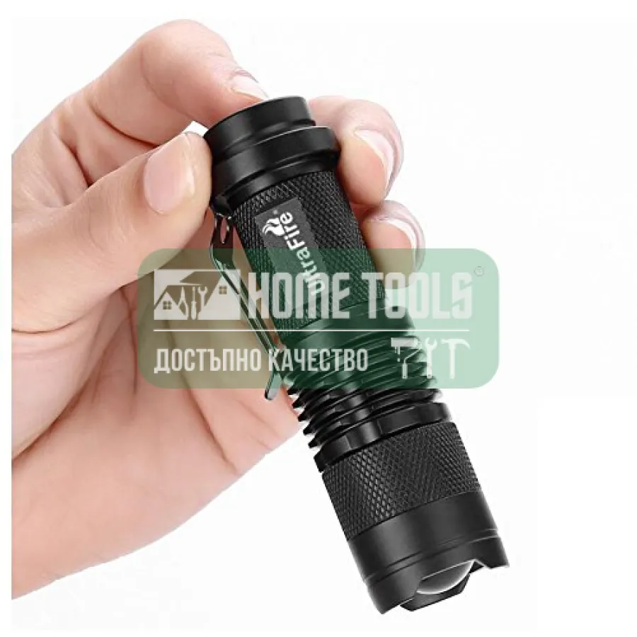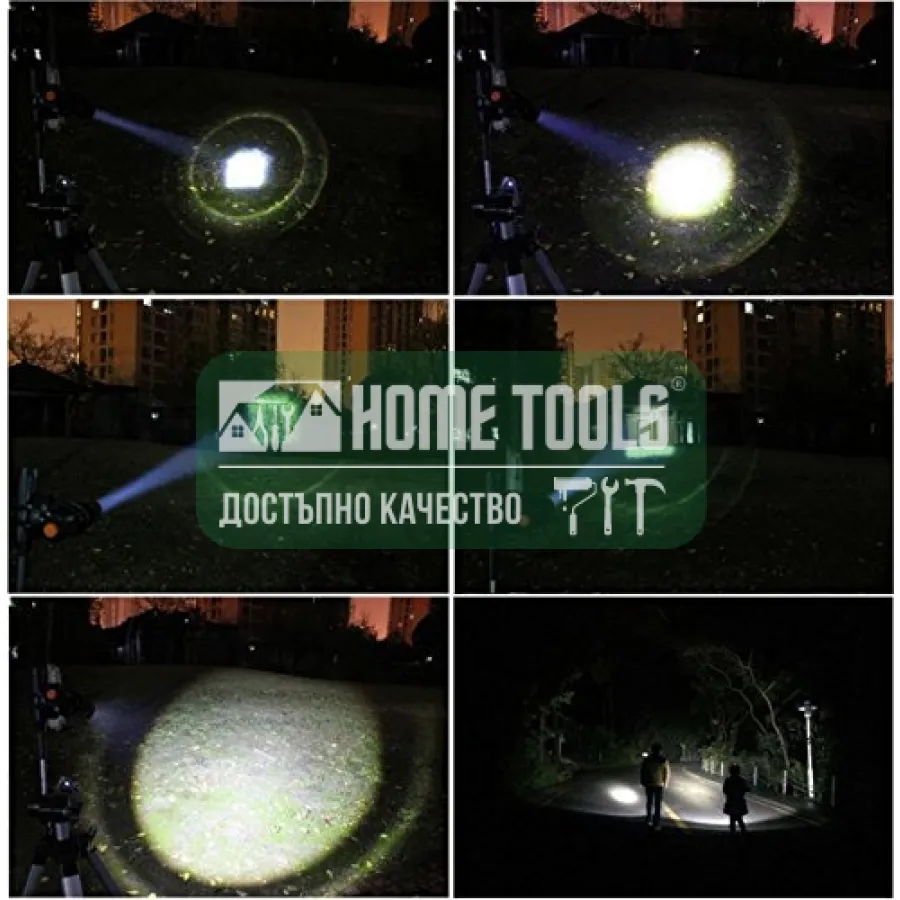 Алуминиев корпус. Три режима на работа: икономичен, силен и пулсираща светлина (блиц) за дезориентация и ефекти.