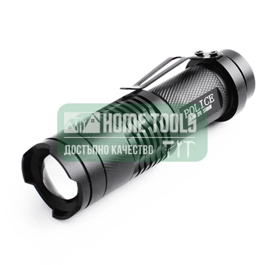 Един малък, но мощен фенер от серията Police прожектор с акумулатор, заряднo за AC 220V със зуум и лупа. Пълен комплект в стилна черна кутия. Състои се от CREE фенер, акумулаторна батерия Li-ion14500, Li-Ion 3,7V, 5800 mAch и зарядно за акумулаторни батерии AC220V. Енергоспестяващ CREE Q5 LED източник с ниска консумация