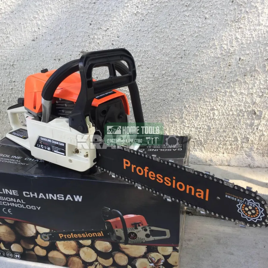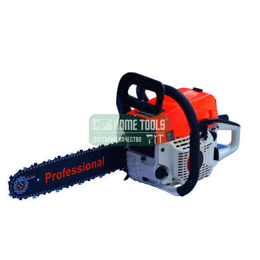 Този модел резачка за дърва е с антивибрационна система на тампони като горивният резервоар заедно с ръкохватките е отделен от корпуса и режещия апарат както при професионалните машини за допълнително намаляване на вибрациите. Резачката е снабдена с регулируема маслена помпа , а въздушният филтър е пластмасов, което позволява миенето му и по този начин се удължава животът му. Метален корпус. Много добро съотношение цена / качество.