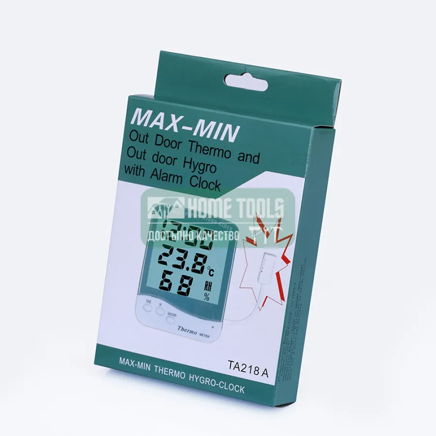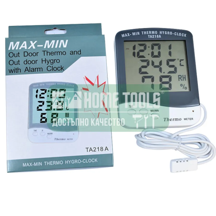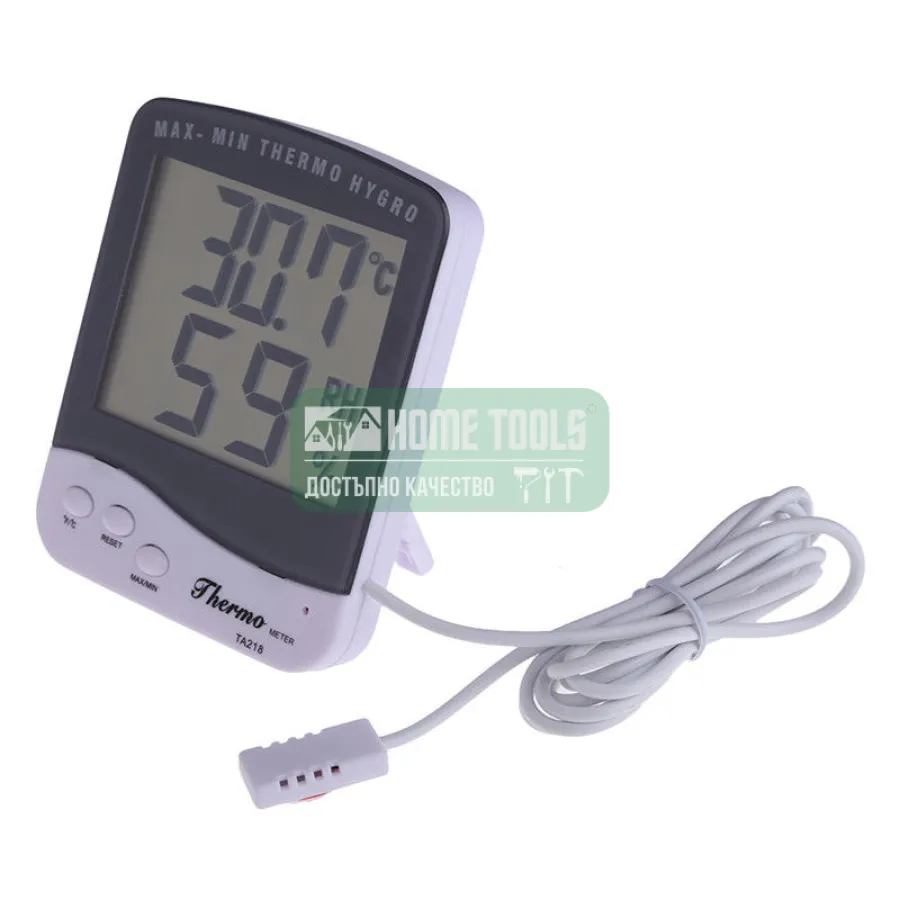 Часовника има функция аларма. Уреда има два датчика за температура, вътрешен-вграден в корпуса на влагомера,