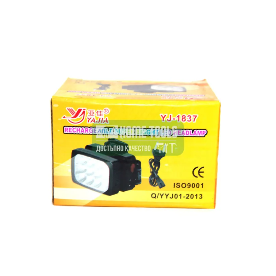 Челник/фенер за глава YJ-1837 работещ с 12 LED диодa с дълъг живот и вграденаакумулаторна 1200mAh батерия.