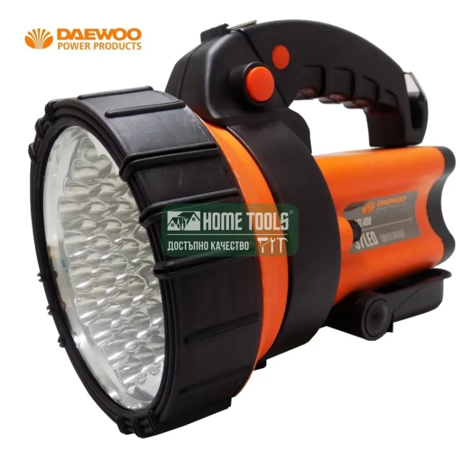 Акумулаторен фенер DAEWOO DASL400 се доставя с батерия с напрежение 4 V, капацитет 4 Ah и зарядно устройство. Времето на зареждане е 8-10 ч, а продължителността на работа е 12 ч. Фенерът включва 37 LED светлини.