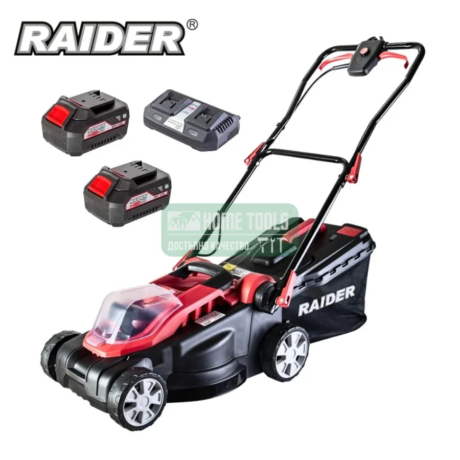 Акумулаторна косачка RAIDER RDP-SLM20 + 2 бр. Акумулаторна батерия RAIDER + Двойно зарядно устройство RAIDER R20