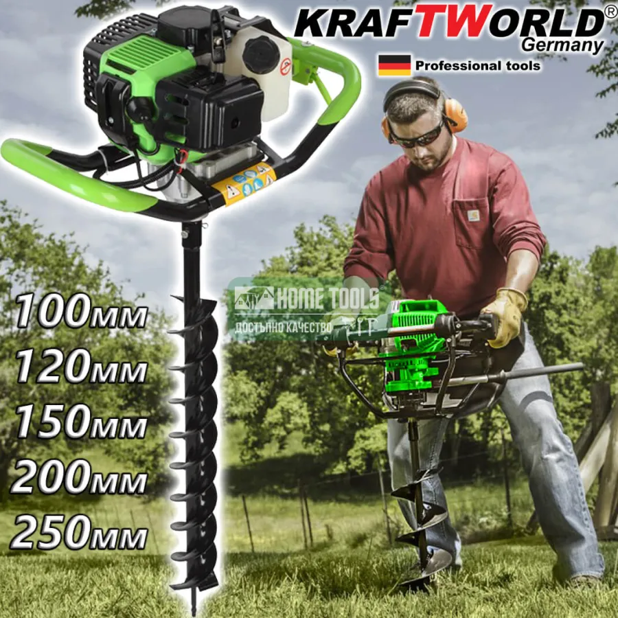 Немски Бензинов Свредел KRAFT WORLD с гумирирани дръжки и анти-вибрационна система.Подходящ за направа на дупки с различни свределели.