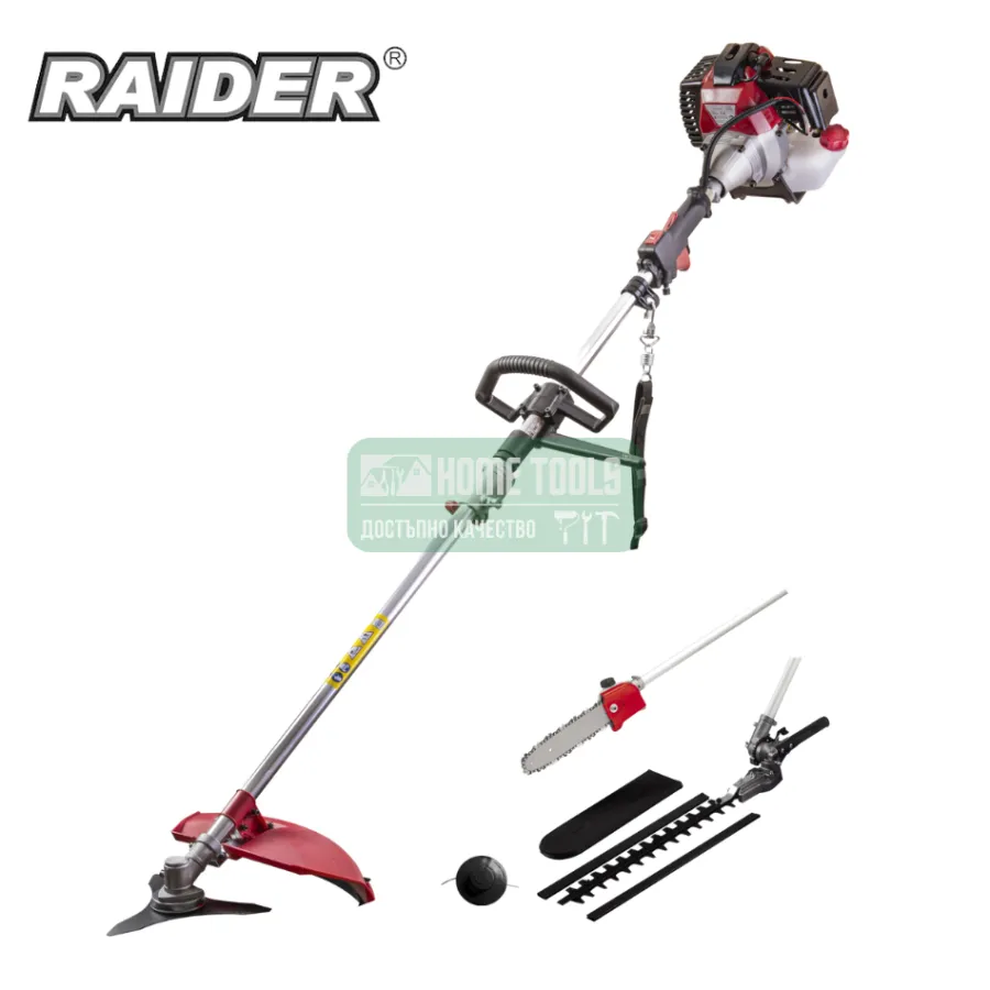 Бензинов тример RAIDER RD-GBC23 е с двутактов, едноцилиндров двигател с въздушно охлаждане. Ширината на косене с метален нож е 255 мм, а с корда 440 мм. Предназначен е за терени, където колесните косачки са неизползваеми, като стръмни склонове, места с гъсто разположени дървета и храсти, тревни площи около постройки, огради, пейки и др. Машината разполага с усилен съединител, за оптимално предаване на мощността. Корпусът е изработен от стомана. Има алуминиева водеща тръба на основния вал. Бензиновата коса може да работи безпроблемно, както с различните типове ножове, така и с наличната в комплекта глава с корда.