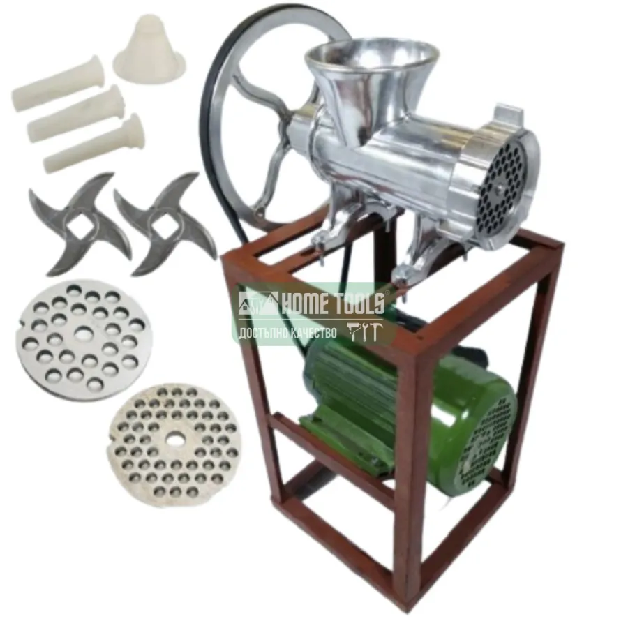 Стабилна чугунена месомелачка със стойка и електромотор.
