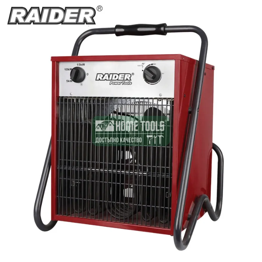 Тагове: Електрически калорифер RAIDER RD-EFH15 трифазен 15 kW отопление големи помещения мощен ефективен дебит на въздух 400 куб.м/ч Hometool.bg онлайн магазин бърза доставка качество