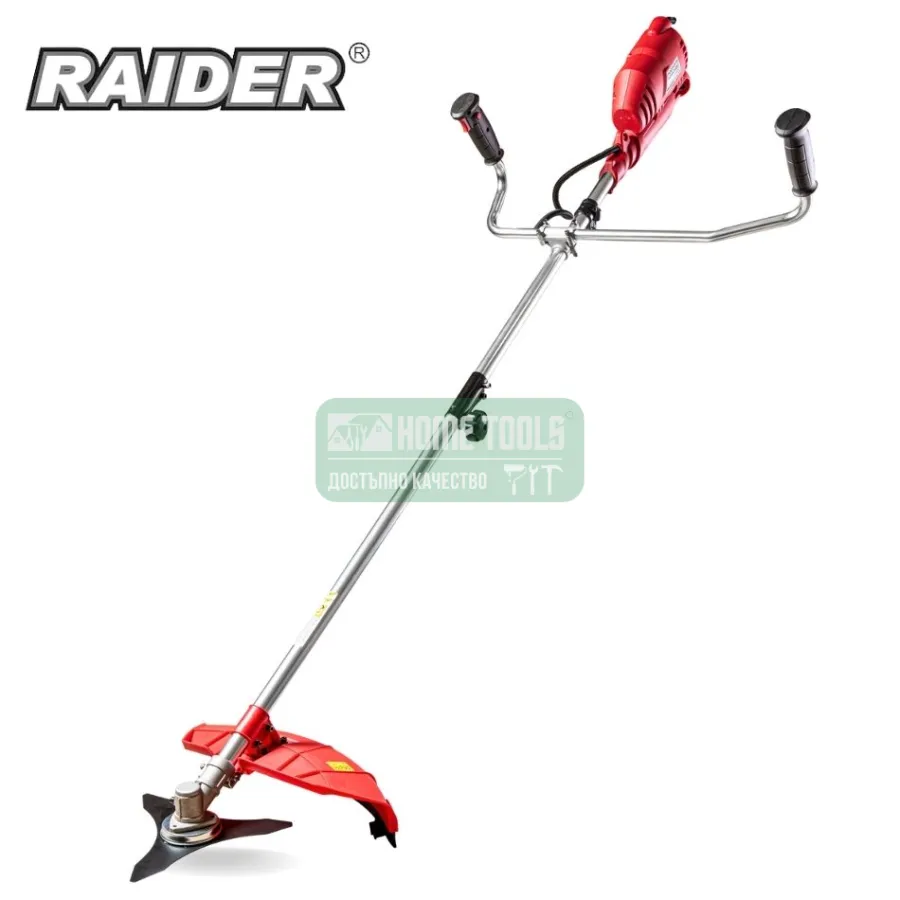 Електрически тример Raider RDP-EBC07 има мощност 1400 W и работна ширина 42 см. Подходящ е за косене на тревни площи покрити със заплетени гъсталаци, места около дървета, пътеки и стълби. Тялото на косата може да се разглоби, което улеснява нейното транспортиране. Разполага с регулируема ръкохватка и презрамка за носене по време на употреба.