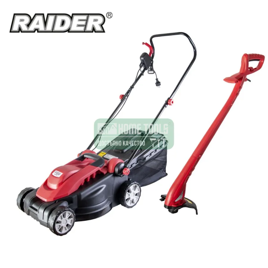 Комплект косачка и тример Raider RD-LMGT01 имат мощност 1600 W и 250 W. Косачката е с вместимост на коша за събиране на трева 35 л. Оборудвана е с високоефективен мотор и максимални обороти без натоварване 3500 об./мин. Височината на рязане е регулируема, а ширината на косене - 360 мм. Електрическия тример е с диаметър на косене 220 мм и максимални обороти без натоварване 12000 об./мин. Електрическите косачка и тример на марката Raider са един пълен комплект за поддържане на постоянно окосена и оформена трева във вашият двор, градина и др. Работата и обслужването на моделите е лесно и бързо.
