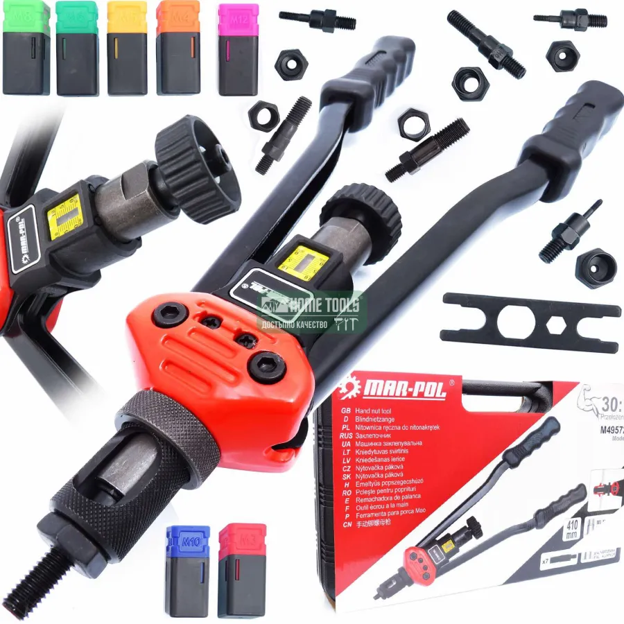 Комплект ръчна нитачка Mar-Pol , 3 в 1, поп нитове, нит гайки, 2 режещи глави 410mm
