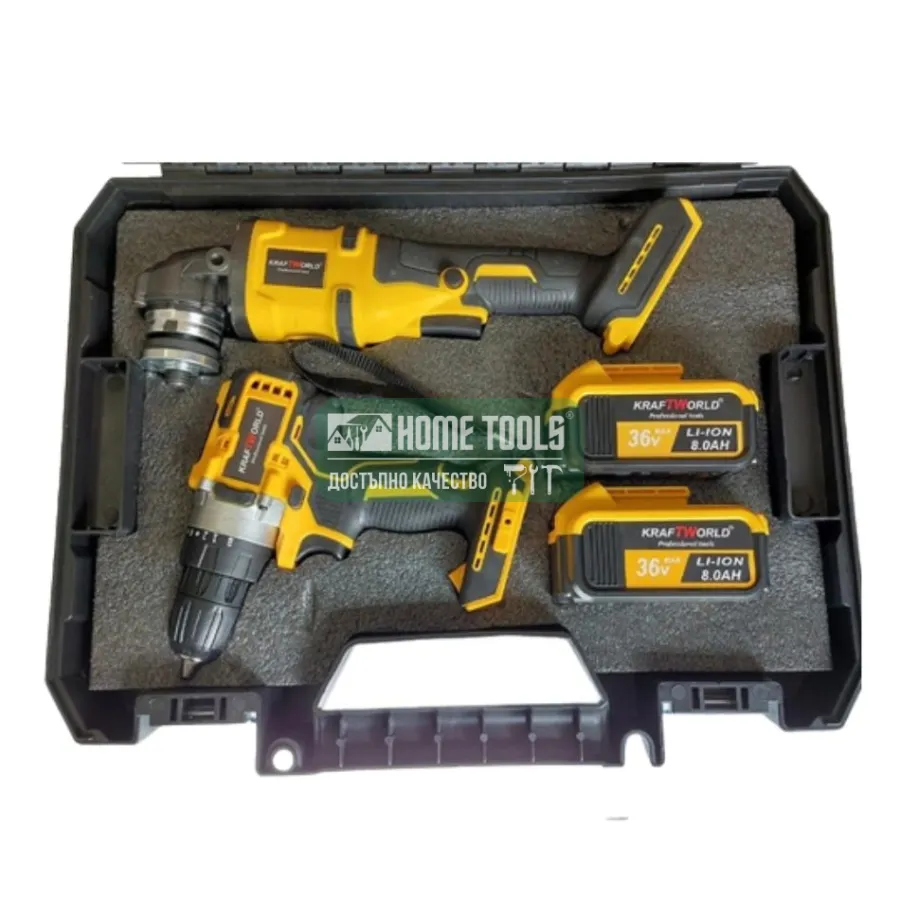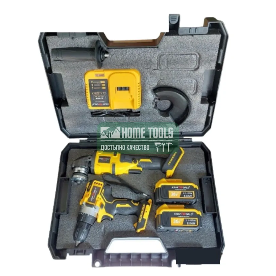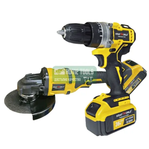 Промо комплект акумулаторни ударни винтоверт и безчетков ъглошлайф, KRAFTWORLD, 36V,8Ah