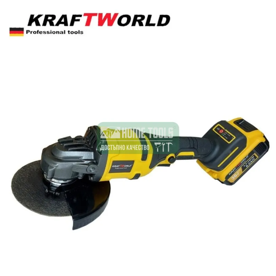 Безчетков акумулаторен ъглошлайф KraftWorld 36V 8,0 Ah: