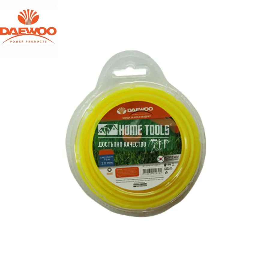 Корда за тример DAEWOO DATL-02B-2.4 е тип квадрат, с дължина 15 м и дебелина 2.4 мм. Кордата се предлага в жълт цвят.
