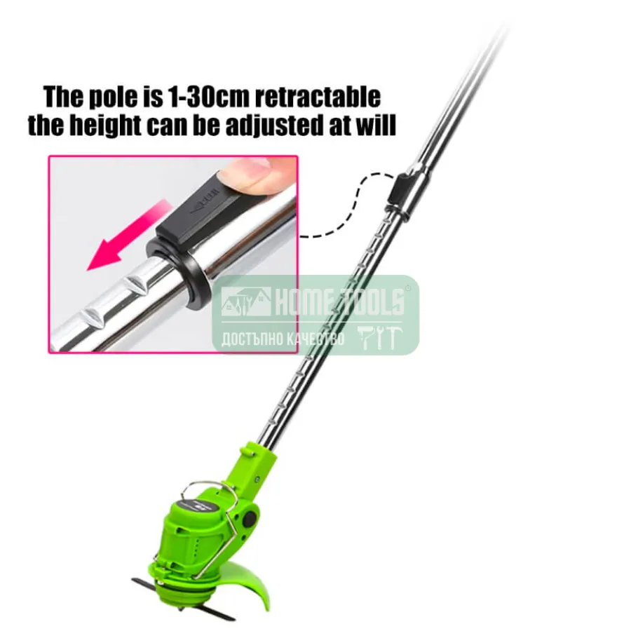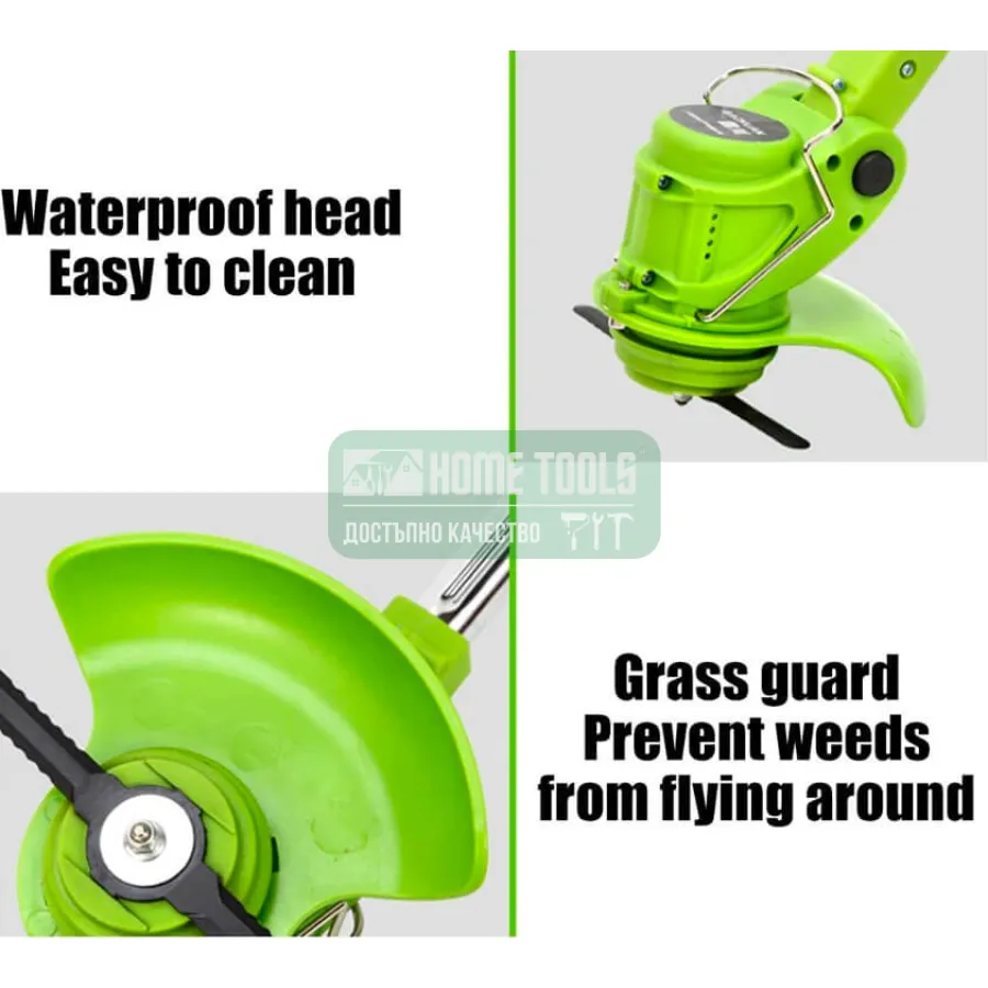 Мощен лек и перфектно балансиран тример за трева. Телескопичната дръжка може да се регулира точно според височината и обхвата на потребителя. Ергономично оформената дръжка и допълнителната дръжка поддържат спокойна, изправена стойка и едновременно улесняват безопасната навигация на инструмента. Защита предпазва съседните цветя от повреди.