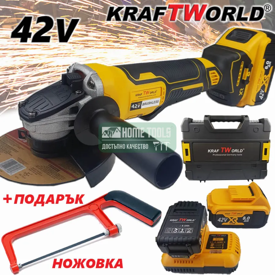 Немски Акумулаторен Безчетков Ъглошлайф KraftWorld 36V + 2 Батерии и Зарядно с Куфар