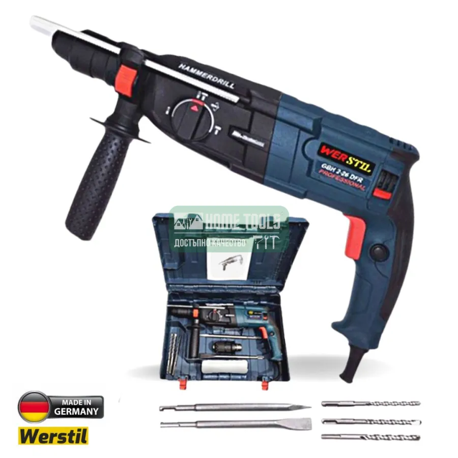 Днес няма ремонт, който да мине без надеждния, проверен и за някои задачи незаменим инструмент – перфоратора. И това е така, защото съвременният свят цели да реши бързо поставените задачи. Ударна бормашина перфоратор, PROFESSIONAL GBH 2-26 DFR, 1100W, WERSTIL е универсален и с висока производителност.