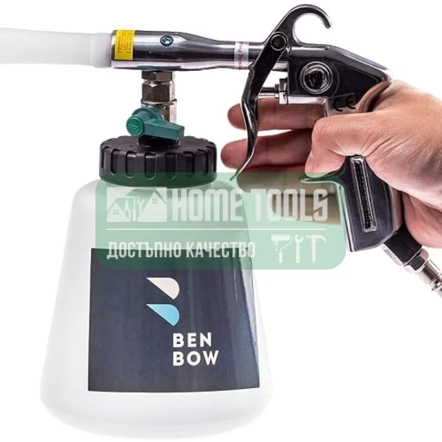 Уникална система за вътрешно почистване особено подходяща за почистване на автомобили. Закачва се към компресор и благодарение на налягането въздуха и препарата се завихрят като мини торнадо и изваждат мърсотията от порите , остава само да я забършете с влажна кърпа. Работи с различни типове препарати според мястото, което третирате. Изключително подходящ за пране и почистване на автомобилни интериорни пластмаси, кожа и текстил.