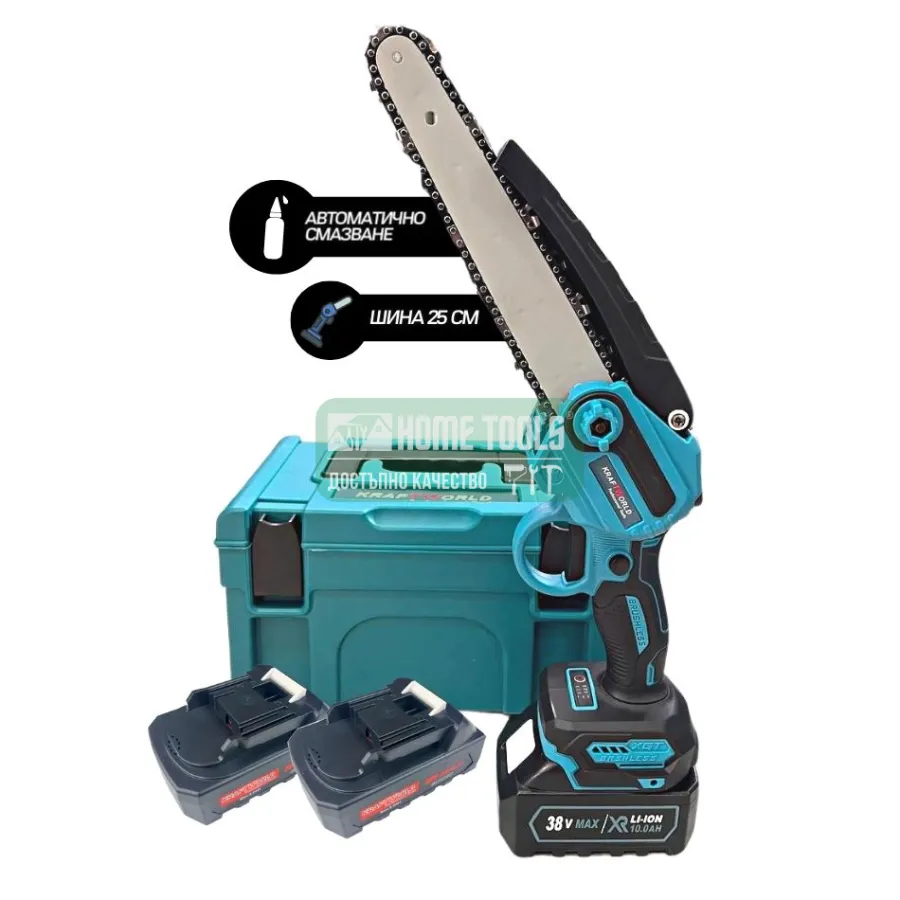 Акумулаторен трион с автоматично омасляване на веригата, KraftWorld 38V, 10 Ah, 25см