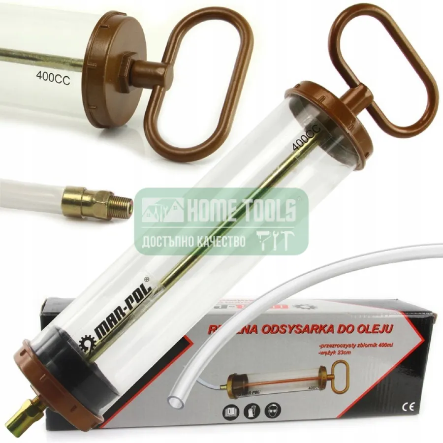 - Пистолета за засмукване на масло е подходящ за отстраняване или замяна на масло в уплътненията на двигателя и скоростната кутия. Прозрачното му тяло позволява лесна проверка.