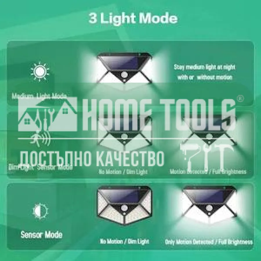3. Постоянна работа на 10% и увеличаване до 100% при засичане на движение и намаляване отново до 10% при липса на такова