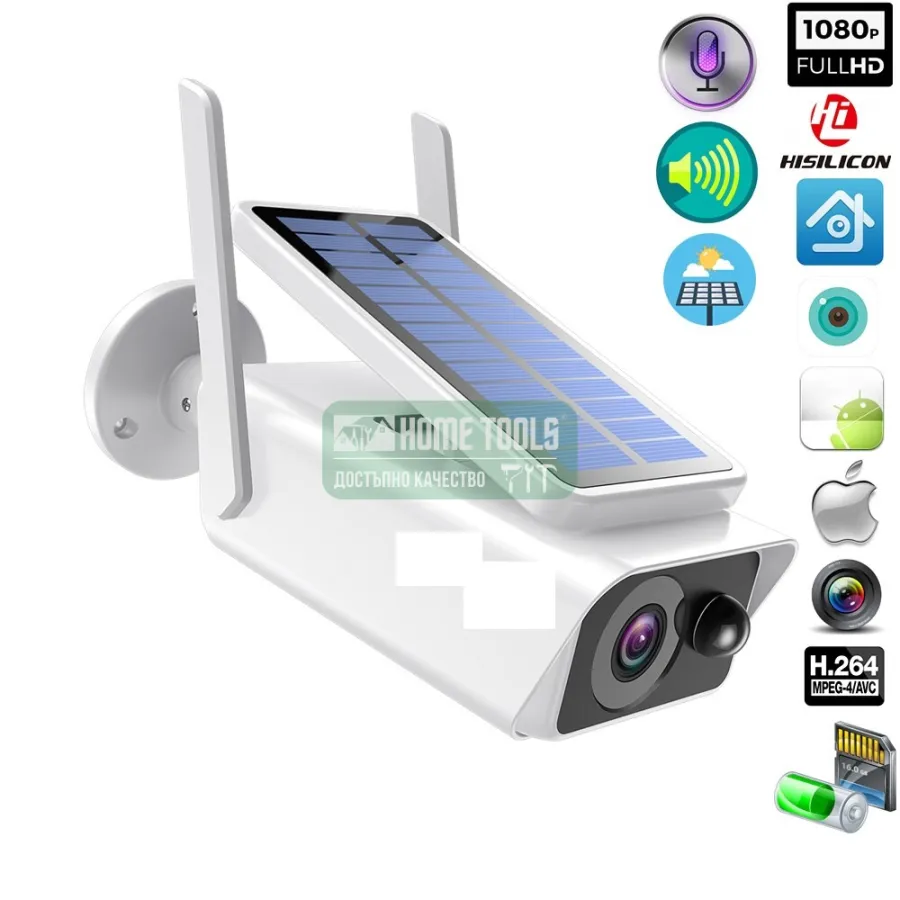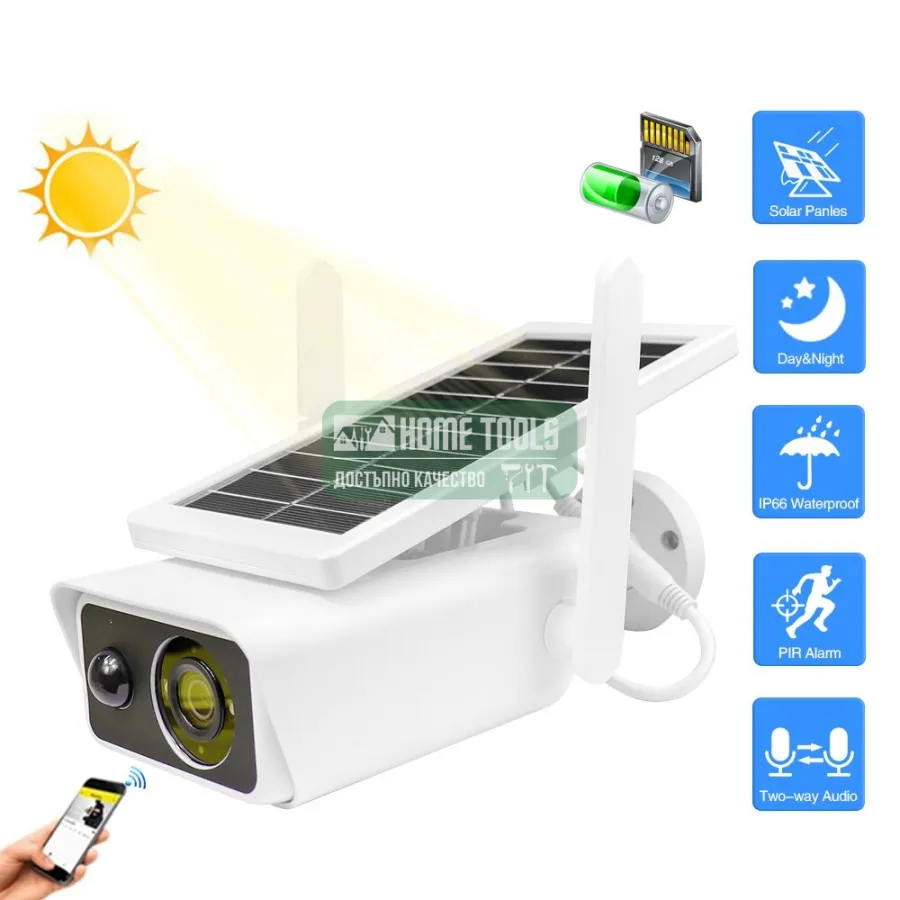 Соларна WiFi Kамера – Водоустойчива не се нуждае от кабел и от електричество тъй като се захранва от соларния панел.