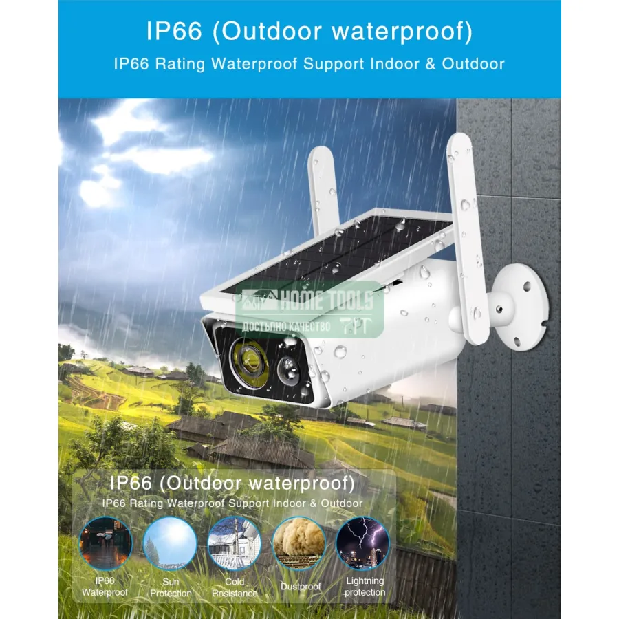 IP66 водоустойчиовст: водоустойчива, светлоустойчива и възможност за използване при различни метеорологични условия. Възможност за наблюдение в реално време чрез приложението ICSEE към мобилния телефон.